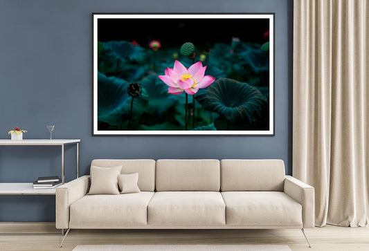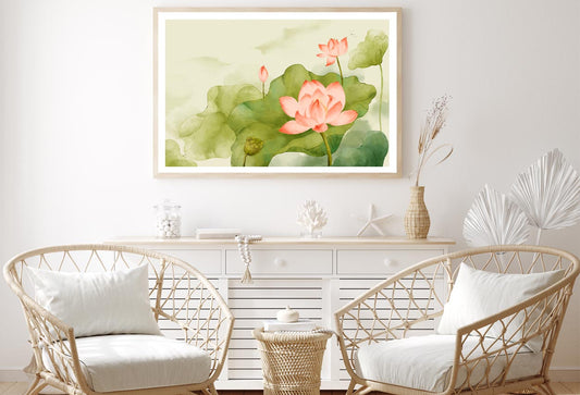 Painting Of a Pink Lotus Flower and Green Leaves Home Decor Premium Quality Poster Print Choose Your Sizes
