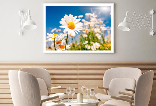 Summer Field With White Daisies on Blue Sky Home Decor Premium Quality Poster Print Choose Your Sizes