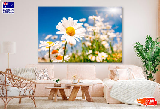 Summer Field With White Daisies on Blue Sky Wall Art Decor 100% Australian Made