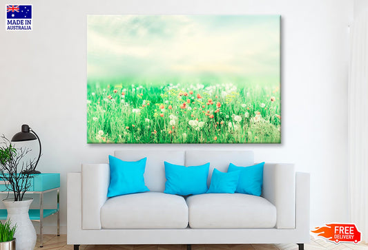 Beautiful Vintage Summer Landscape with Sun and Flowers Wall Art Decor 100% Australian Made