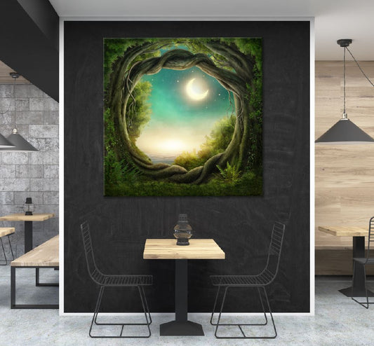 Square Canvas Dark Forest & Moonlight Photograph High Quality Print 100% Australian Made