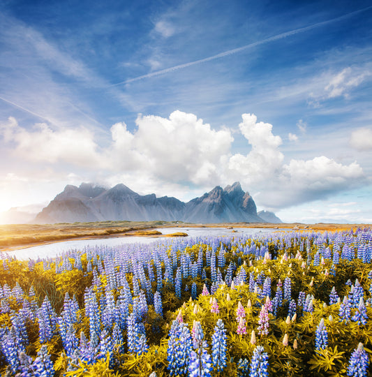 Square Canvas Purple Flowers & Mountain High Quality Print 100% Australian Made