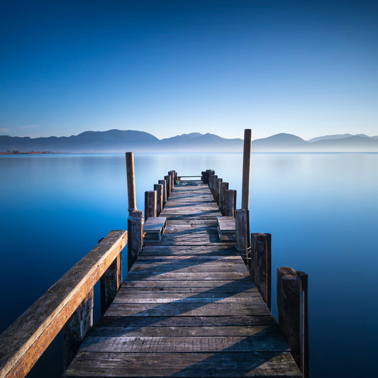 Square Canvas Wooden Pier Over Lake High Quality Print 100% Australian Made