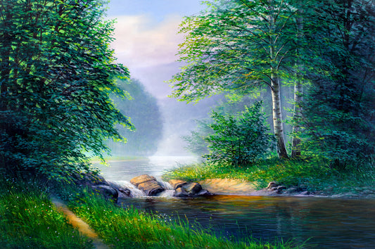 Stunning Forest & Water Stream Painting Print 100% Australian Made