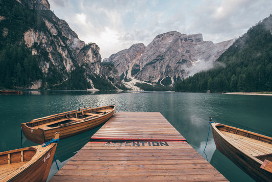 Lake & Wooden Pier with Boats View Photograph Print 100% Australian Made