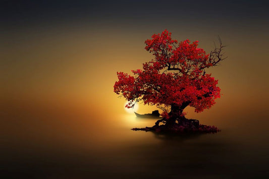Red Leaves Tree in Sunset Photograph Print 100% Australian Made