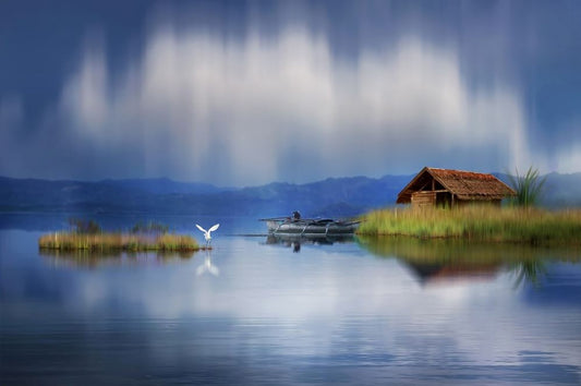 House & Boat Near a Lake Photograph Print 100% Australian Made