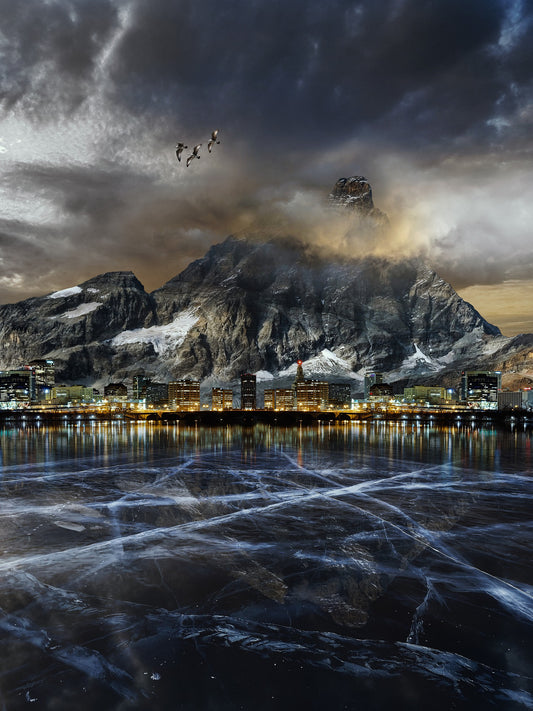 Stunning City View with Mountain View Photograph Print 100% Australian Made