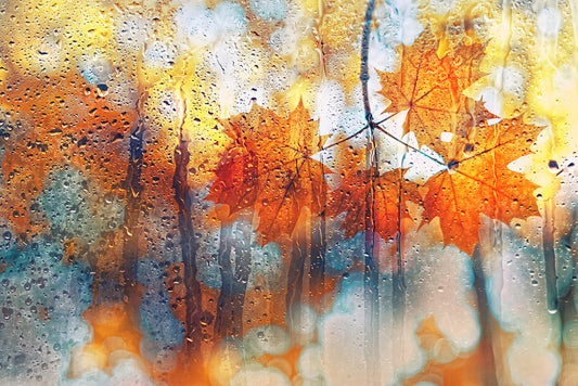 Colourful Autumn Leaf on a Wet Glass Photograph Print 100% Australian Made