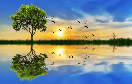Tree, Bird & Sunset Stunning Reflection On Lake Photograph Print 100% Australian Made