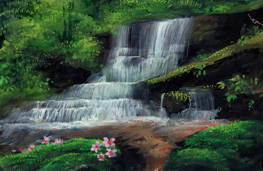Water Stream Between Flower Trees Painting Print 100% Australian Made