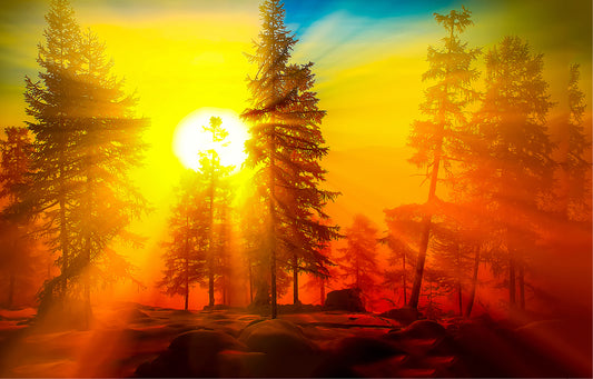 Sunrise Through a Forest Photograph Print 100% Australian Made