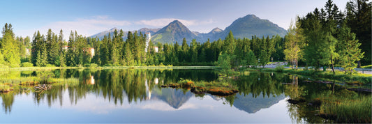 Panoramic Canvas Lake & Mountain View Forest Trees High Quality 100% Australian made wall Canvas Print ready to hang