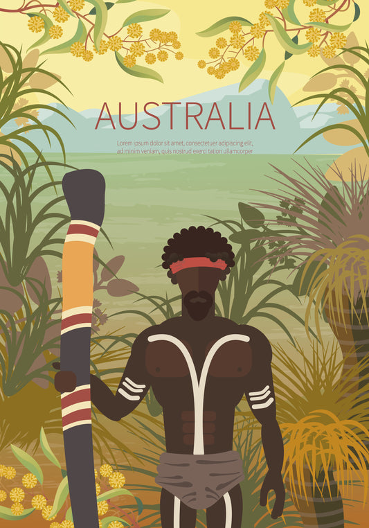 Aboriginal man in Jungle Vector Cartoon Art Print 100% Australian Made
