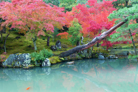 Red Leaves Tree Near a Lake Print 100% Australian Made
