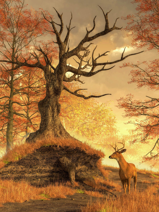 Tree & Deer in Sunset Painting Print 100% Australian Made