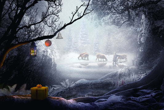 Christmas Shepherd With Sheep Forest Print 100% Australian Made
