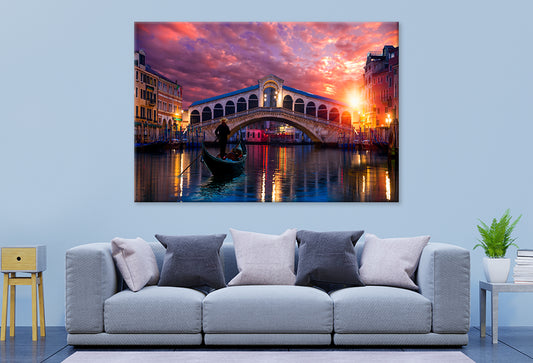 Gondola Near Rialto Bridge Venice Wall Art Decor 100% Australian Made