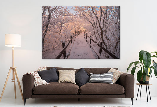 Winter scenery and snow clinging to the branches of the mountain peak Wall Art Decor 100% Australian Made