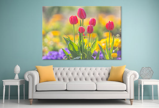Spring scenery of fields along Korea's Nakdong River with tulips blooming Wall Art Decor 100% Australian Made