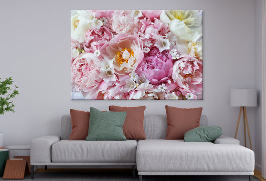 Pink and White Peonies Closeup Wall Art Decor 100% Australian Made