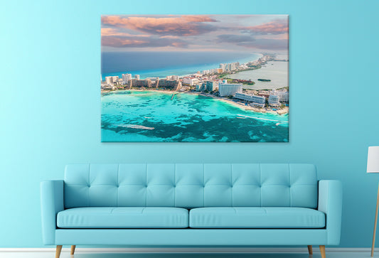 Hotels in Cancun Hotel Zone at Sunset Wall Art Decor 100% Australian Made