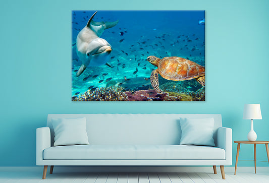 Dolphin and Turtle Underwater Wall Art Decor 100% Australian Made