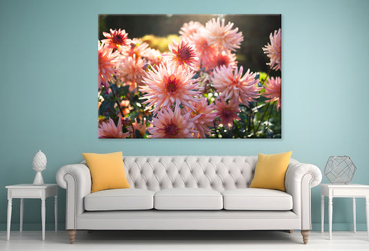 Blooming Dahlia Flowers in Garden Wall Art Decor 100% Australian Made