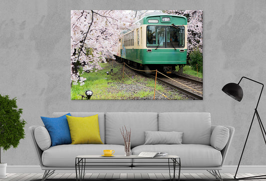 Kyoto Train with Cherry Blossoms Wall Art Decor 100% Australian Made