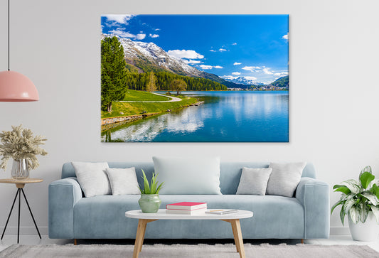 Crystal Blue Lake St. Moritz, Switzerland Wall Art Decor 100% Australian Made
