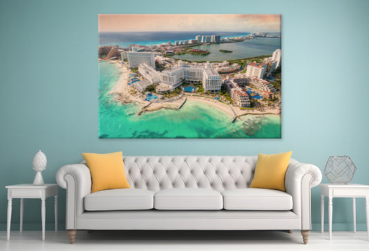 Panoramic View of Cancun Beach and Hotels Wall Art Decor 100% Australian Made