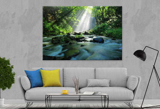 Autumn Forest with Sunlight Beams Wall Art Decor 100% Australian Made