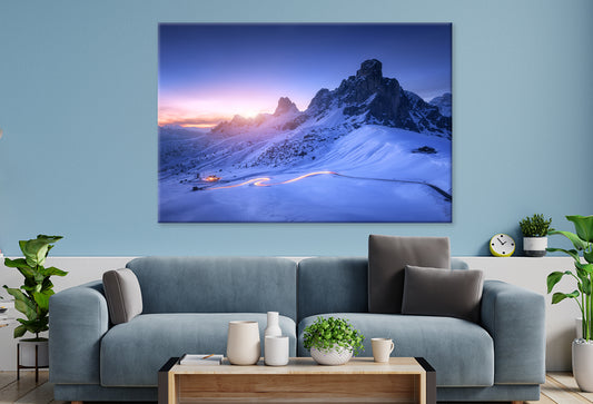 Snowy Mountain Road at Nightfall Wall Art Decor 100% Australian Made