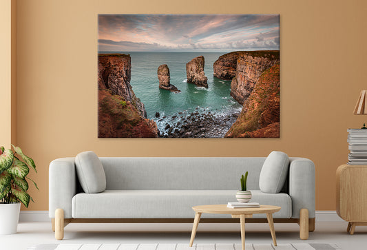Sunrise Over Pembrokeshire Rocks Wall Art Decor 100% Australian Made