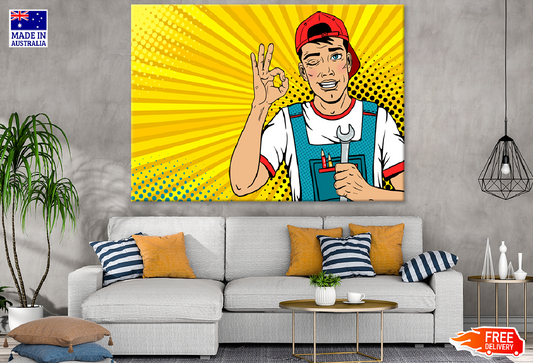 Boy Holds a Wrench Illustration Print 100% Australian Made