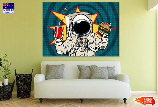 Astronaut Holding Burger & Cola Drink Illustration Print 100% Australian Made