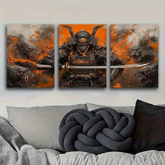 3pcs Samurai Warrior Fantasy Wall Art Set Canvas Framed 50x70cm - High Quality Print 100% Australian Made Wall Canvas Ready to Hang