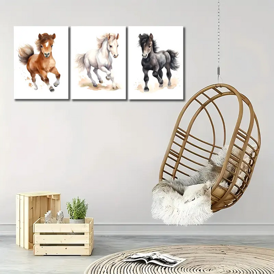 3pcs Cute Horse Pictures Metal Print Ready to Hang Art