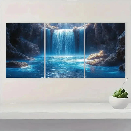 3pcs Blue Waterfall Landscape A Wall Art Set Canvas Framed 40x60cm - High Quality Print 100% Australian Made Wall Canvas Ready to Hang