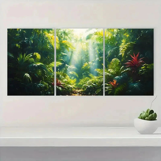 3pcs Rainforest Scene Featuring Lush Green A Wall Art Set Canvas Framed 40x60cm - High Quality Print 100% Australian Made Wall Canvas Ready to Hang