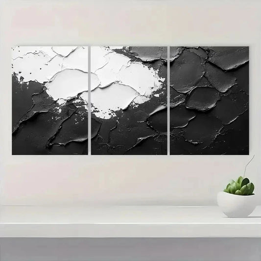 3pcs Black , White Abstract Texture Painting A Wall Art Set Canvas Framed 50x70cm - High Quality Print 100% Australian Made Wall Canvas Ready to Hang