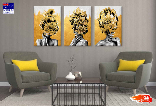 3 Set of Gold Girl Figure High Quality Print 100% Australian Made Wall Canvas Ready to Hang