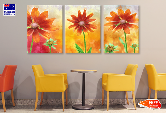 3 Set of Gazania Flower Art High Quality print 100% Australian made wall Canvas ready to hang
