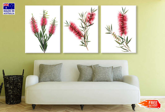 3 Set of Red Bottle Brush Flowers Photograph High Quality Print 100% Australian Made Wall Canvas Ready to Hang