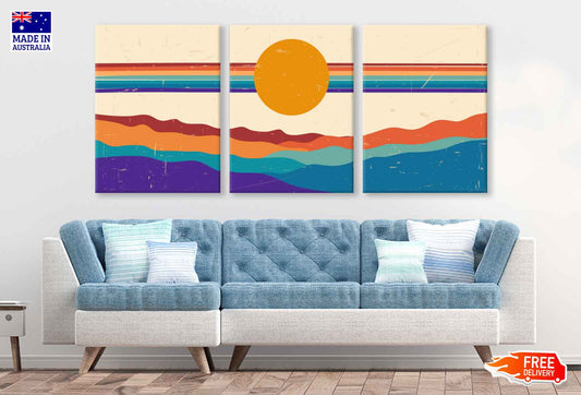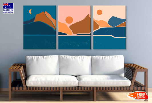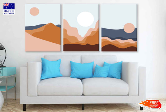 3 Set of Mountain with Sun Vector Illustration High Quality Print 100% Australian Made Wall Canvas Ready to Hang