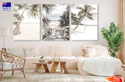 3 Set of Palm Tree & Sea with Swing Photograph High Quality Print 100% Australian Made Wall Canvas Ready to Hang