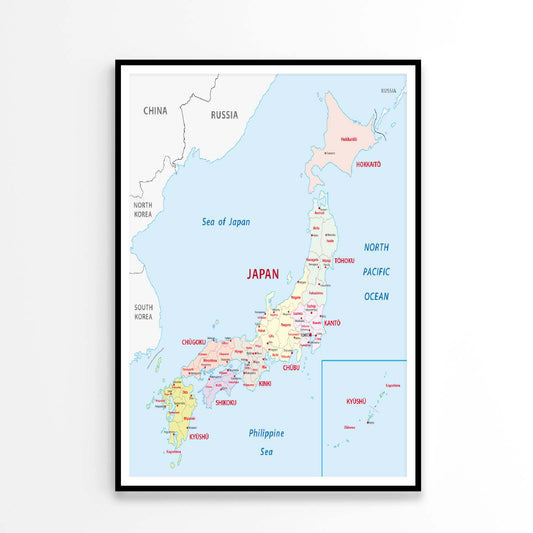 Japan Administrative Map Home Decor Premium Quality Poster Print Choose Your Sizes