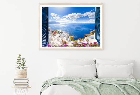 Coast of Santorini with Blue Sea Home Decor Premium Quality Poster Print Choose Your Sizes