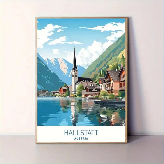 Hallstatt Austria Lake Nature Mountain Travel Poster Print Wall Art