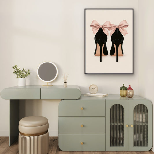 Watercolor Pink Bow Black High Heel Painting Fashion Home Decor Premium Quality Poster Print Choose Your Sizes